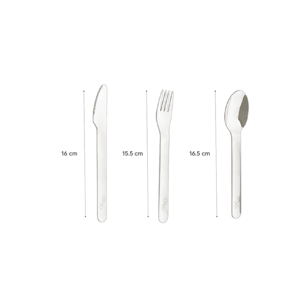Αυτό το πανέμορφο σετ επαναχρησιμοποιούμενων μαχαιροπήρουνων, της αγαπημένης μας Citron, κατασκευασμένο από ανοξείδωτο χάλυβα ποιότητας τροφίμων 304 για μακροχρόνια χρήση, χωρίς BPA, φθαλικές ενώσεις και μόλυβδο, διασφαλίζει ότι η εμπειρία του γεύματός σας θα είναι πιο απολαυστική από ποτέ! Εύκολο στη μεταφορά, χάρη στον πρωτοποριακό χυτό σχεδιασμό του που επιτρέπει τη στοίβαξη των 3 τεμαχίων, και τη μοναδική θήκη από σιλικόνη, το σετ αυτό θα σας συντροφεύει στο σχολείο, τη βόλτα ή το ταξίδι, διευκολύνοντας τη καθημερινότητά σας. Πλένεται στο πλυντήριο πιάτων, χωρίς τη θήκη σιλικόνης. Πλύνετε τη θήκη σιλικόνης γυρνώντας την προς τα έξω και πλένοντάς την με ζεστό σαπουνόνερο. Μην το τοποθετείτε στο φούρνο μικροκυμάτων, το πλυντήριο πιάτων ή την κατάψυξη. Διαστάσεις: κουτάλι: 6.5 εκ., πιρούνι: 15.5 εκ., μαχαίρι: 16 εκ.