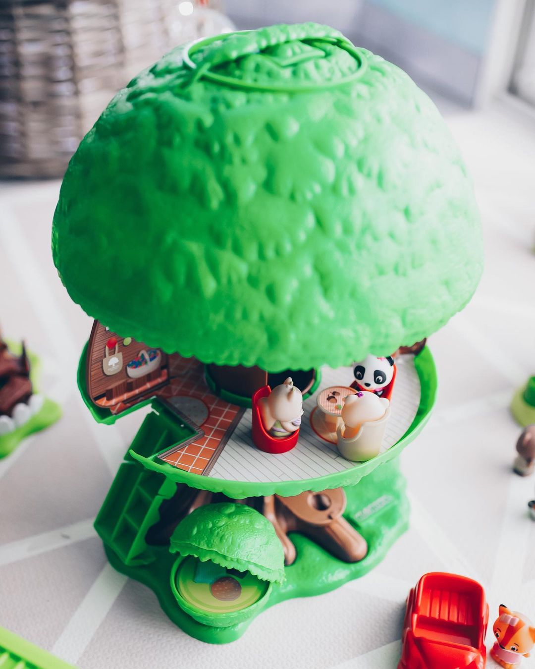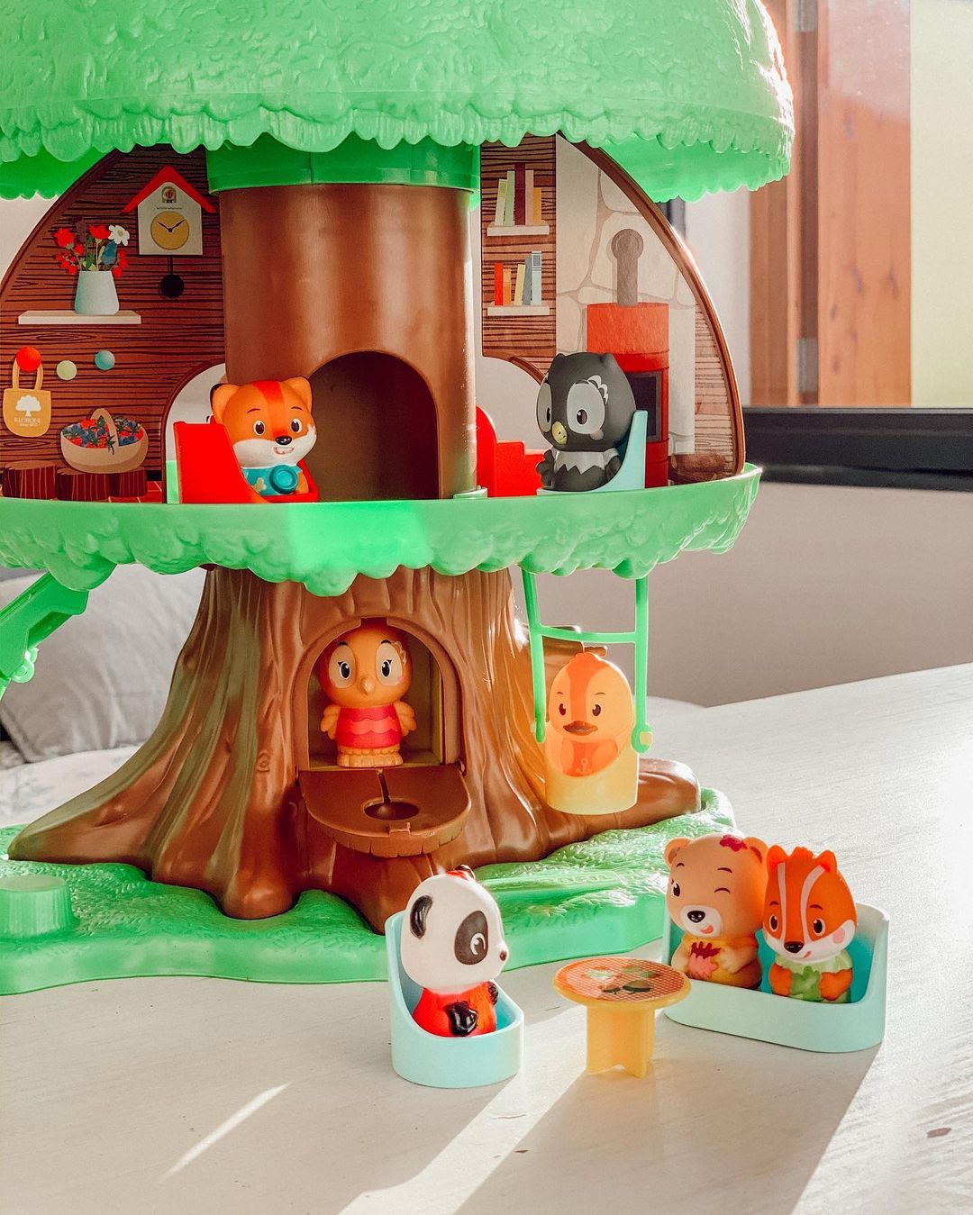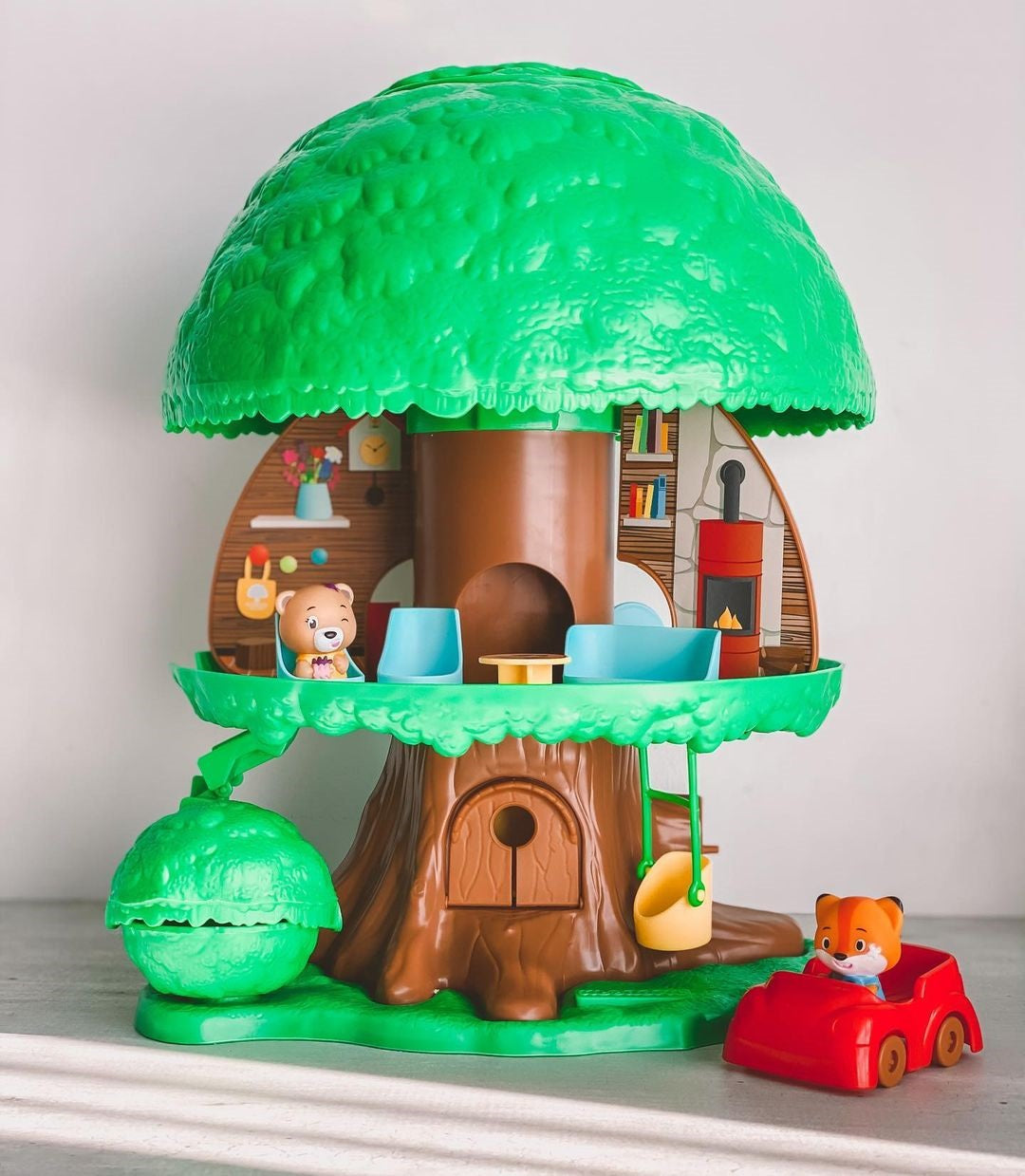 And when the game is over, press the roof again to close the tree (with all the toys inside) and put it in its place or carry it everywhere together !