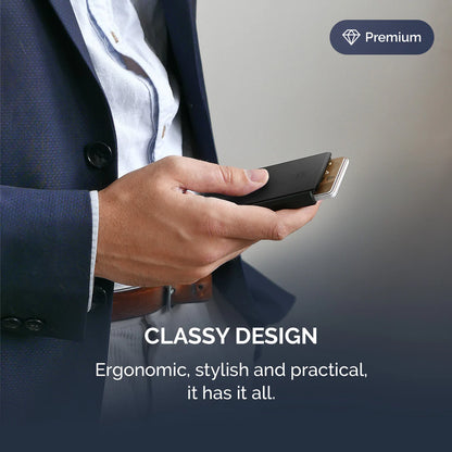 - Αυτή η θήκη κάρτας σάς επιτρέπει να μεταφέρετε μόνο τις κύριες κάρτες σας, με ελάχιστο αποτύπωμα και πλήρη εργονομία.