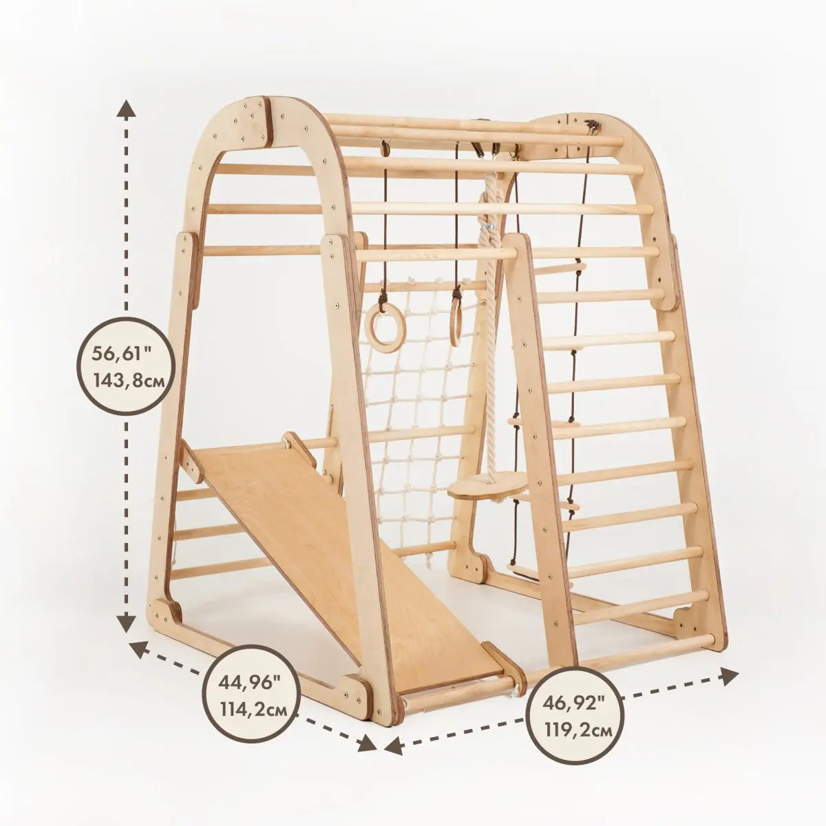 Εσωτερική Ξύλινη παιδική χαρά για παιδιά - Παιδική χαρά 7 σε 1 + Σετ με κούνιες + τσουλήθρα + πίνακας ζωγραφικής