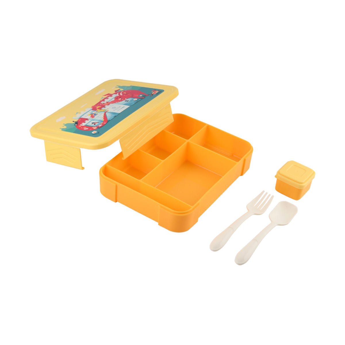 Το νέο, παιδικό φαγητοδοχείο της Estia φέρνει τη μαγεία των παραμυθιών στην καθημερινότητα του παιδιού, από το σχολείο μέχρι την εκδρομή. Διαθέτει χωρητικότητα 1330ml και 5 πρακτικές θήκες, ιδανικές για το κύριο γεύμα, φρούτα, σνακ και γλυκά. Περιλαμβάνει παιδικό κουτάλι, πιρούνι και μικρό δοχείο για σως. Είναι κατάλληλο για χρήση σε φούρνο μικροκυμάτων, για πλυντήριο πιάτων (χωρίς το καπάκι) και μπαίνει σε ψυγείο και καταψύκτη για καλύτερη συντήρηση του φαγητού. Κατασκευασμένο από υψηλής ποιότητας υλικά, χωρίς BPA. Γεμάτο χρώματα και πρακτικό σχεδιασμό, αποτελεί την ιδανική λύση για το κολατσιό ή το μεσημεριανό κάθε μικρού ήρωα.