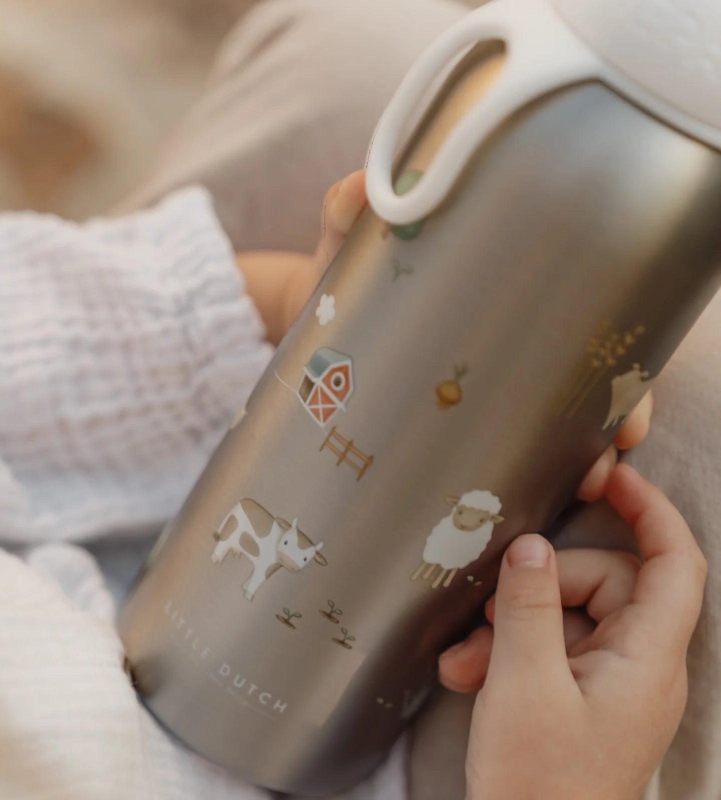Little Dutch Ανοξείδωτο μπουκάλι - θερμός flip-up campus 350ml - Little Farm